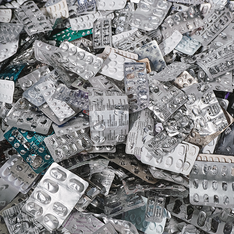 Cardboard, paper and any other types of waste other than empty medicine blister packs.