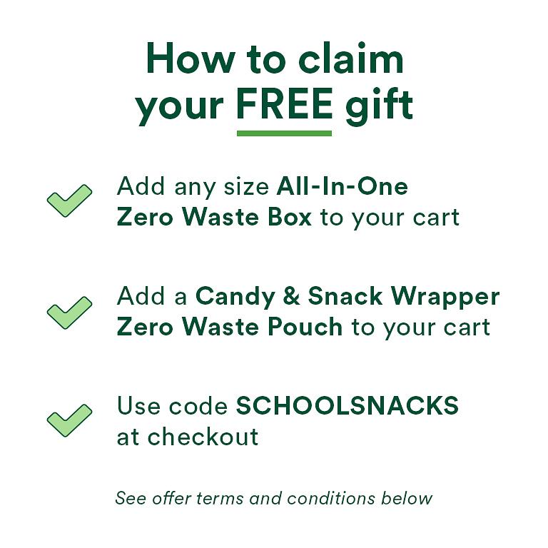 Order any size All-In-One Zero Waste Box and get a FREE Candy & Snack Wrapper Zero Waste Pouch to take with you on the go! 🚌🍎