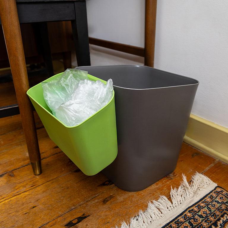 - Grey bin with green removable compartment