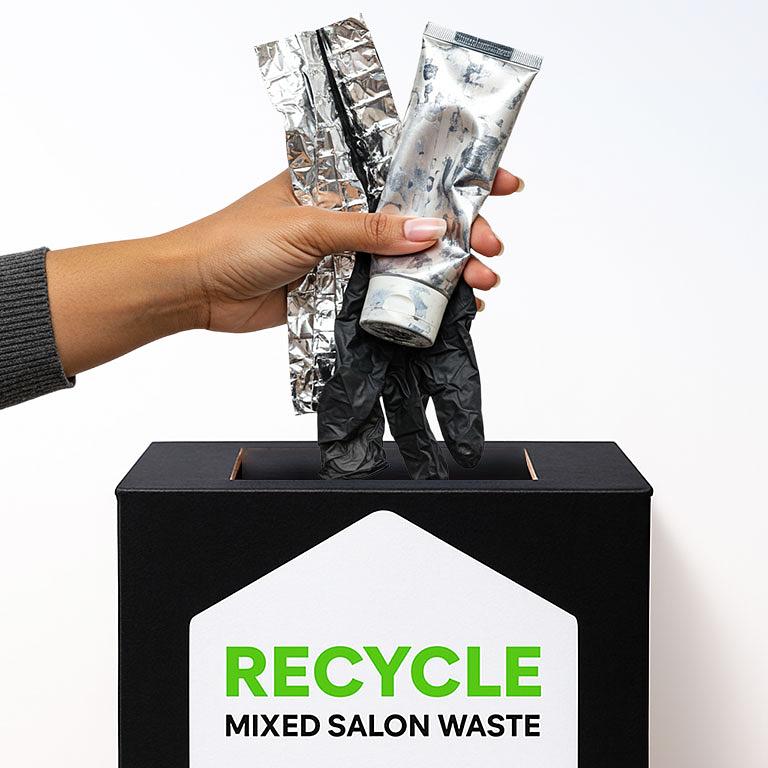 Please send us mixed salon waste including metal color tubes and hair foils, empty plastic product containers, disposable gloves, masks, and used coffee cups.