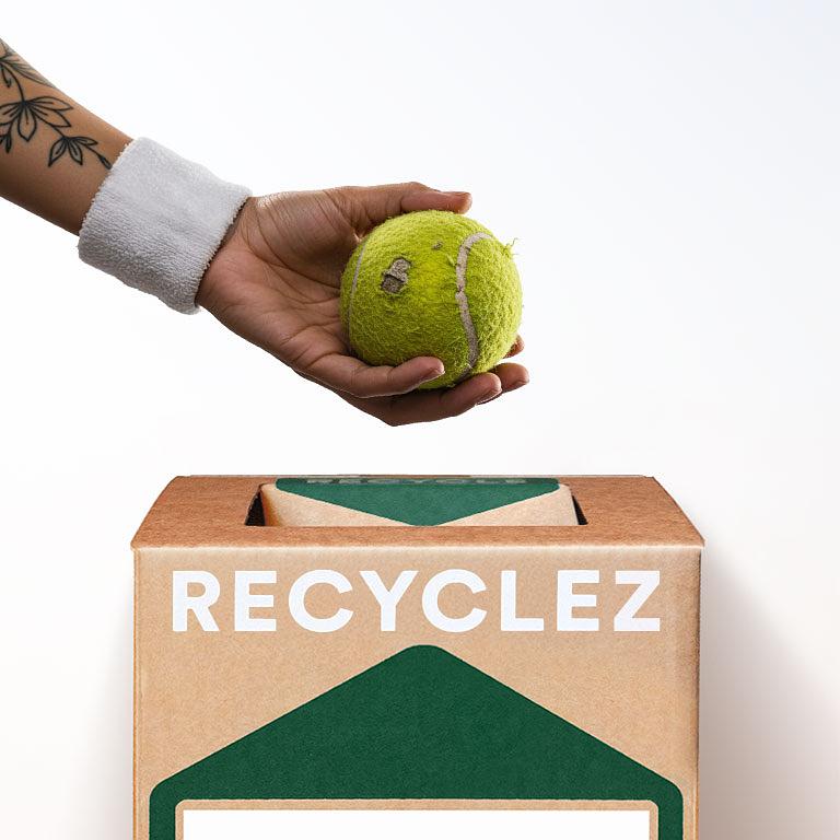 Vous pouvez utiliser cette Boîte Zéro Déchet™ pour recycler toutes balles ou ballons de : tennis, football, basketball, handball, ping-pong, golf, squash, softball, baseball et racquetball, ballons en mousse